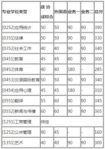 二、學(xué)校復(fù)試基本分?jǐn)?shù)線(專(zhuān)業(yè)學(xué)位類(lèi))