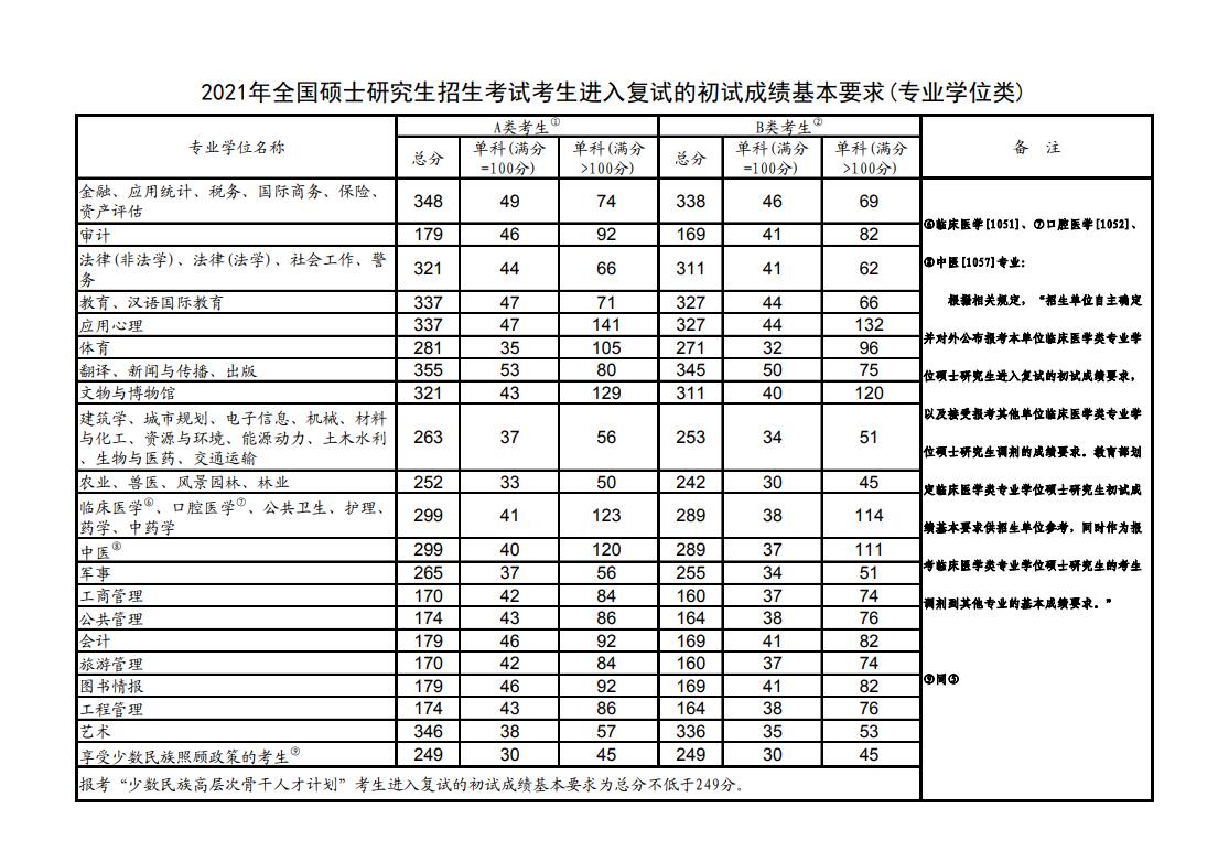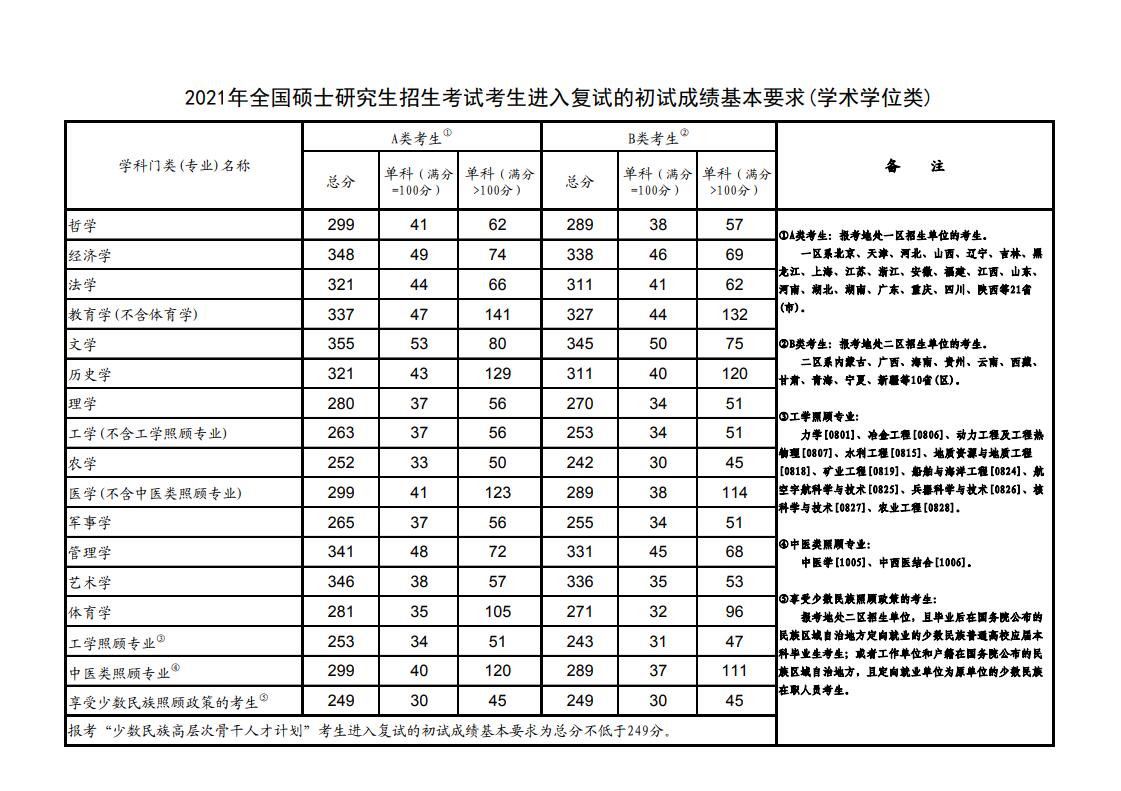 2021年全國碩士研究生招生考試國家分數(shù)線公布