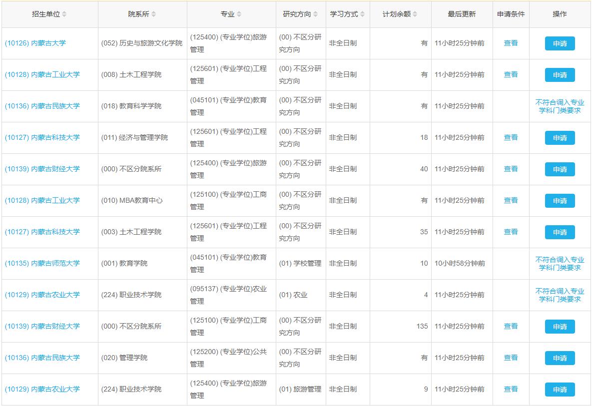 內(nèi)蒙古2022年MBA、MPA、MTA、MEM調(diào)劑匯總考研新聞